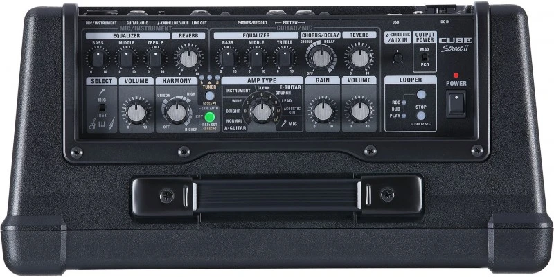 The BOSS CUBE Street II is the latest version of the hugely popular mobile amp for street performers, replacing the Roland CUBE Street in the Roland/BOSS lineup. Upgraded features include: an ABS injection-molded cabinet for increased durability and reduced weight; enhanced 10 watt power output; a Mic/Instrument channel with harmony, three-band EQ, and reverb; Guitar/Mic channel with nine amp types, three-band EQ, chorus/delay, reverb, and tuner; inbuilt looper with up to 45 seconds of stereo recording time; and much more!