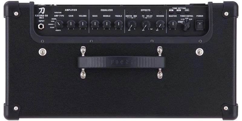 The BOSS Katana-50 MkII maintains the momentum set by the original groundbreaking Katana guitar amplifier, coming packed with key improvements over the original. Five effects can now be used at once, making the MkII Katana a true rival for a full traditional pedalboard. The five amp characters (Clean, Crunch, Lead, Brown, and Acoustic) now come with newly voiced variations, resulting in ten overall tones. Updated Tone Studio software opens up 60 different authentic BOSS effects, channel and global EQs, adjustable routing, and much more.