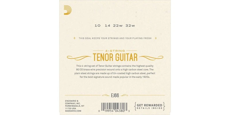 These high quality D’Addario EJ66 Tenor Guitar Strings have been designed specifically for use with steel string tenor guitars. The use of Plain Steel and 80/20 Bronze wound results in a bright acoustic tone with outstanding projection.