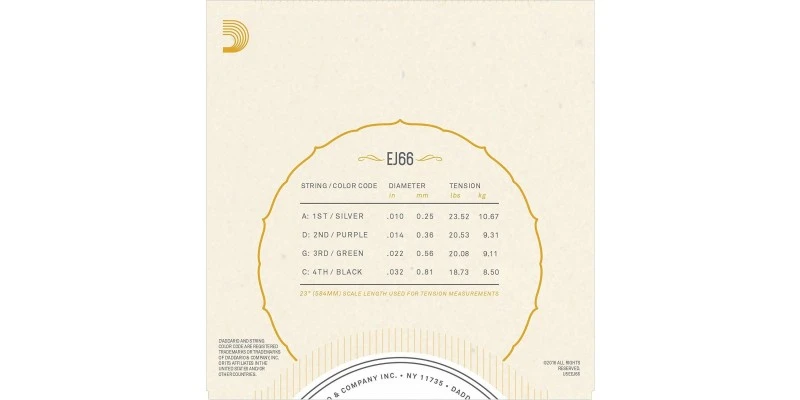 D’Addario EJ66 strings are package in D’Addario’s signature corrosion resistant packaging, which is also environmentally friendly. They are also made in the U.S.A. for assured quality and performance.