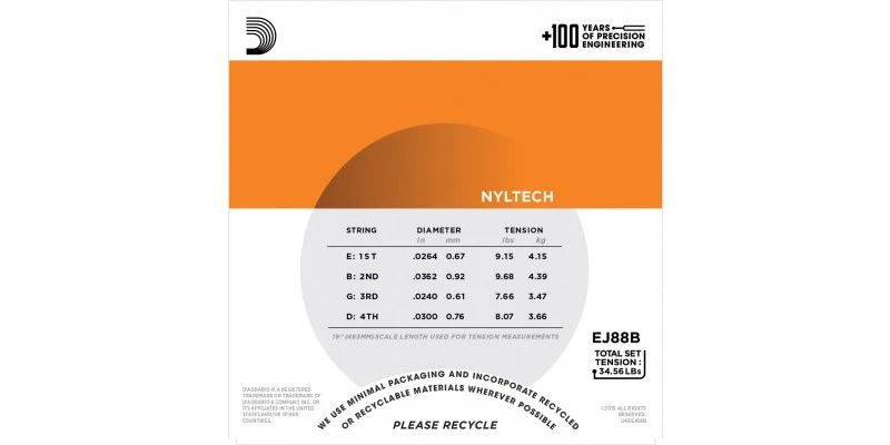D’Addario EJ88B Nyltech, Baritone Ukulele Strings