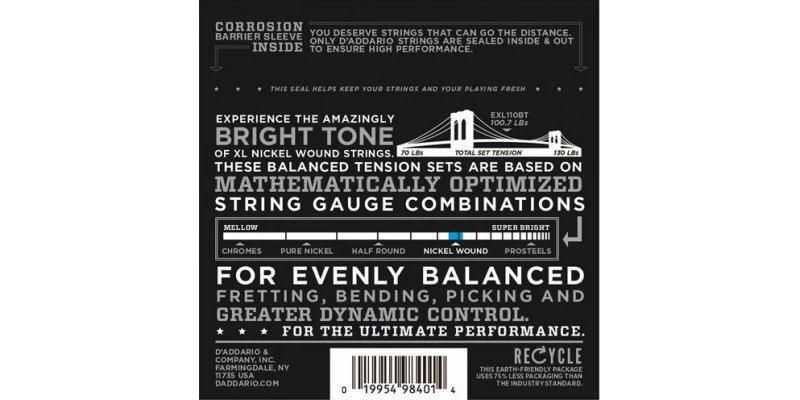 The D’addario EXL110BT are Balanced Tension electric guitar strings. Nickel round wound, they have been optimised to have a consistant tension across the fretboard.