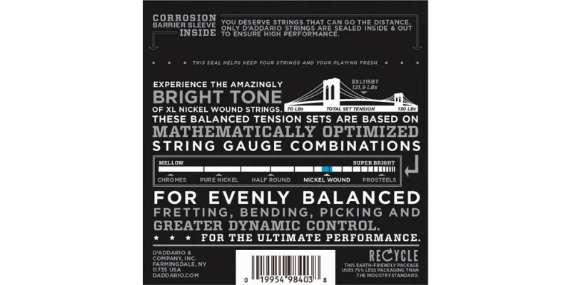 The D’addario EXL115BT Electric Guitar Strings are Nickel Wound and Balanced Tension. These have been mathematically optimised to be balanced right across the fretboard.