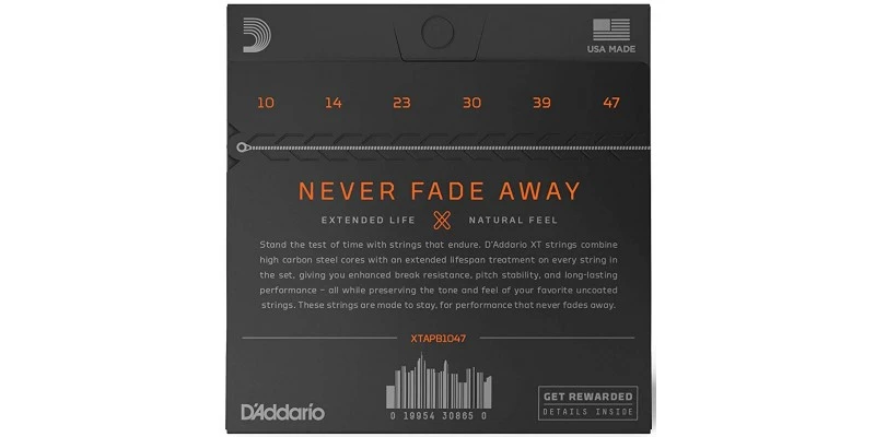 The new D’Addario XTAPB1047 XT Phosphor Bronze acoustic guitar string set is here available in Extra Light tension, with 10-47 string gauges. Replacing the D’Addario EXP15 string set, the XTAPB1047 set features an improved, microscopically thin treatment, providing protection against corrosion while preserving the tone and feel of uncoated strings. The new XT Phosphor Bronze Acoustic Guitar strings are now available from Merchant City Music, Glasgow’s longest-established guitar specialist. We ship fast to the UK, Europe and worldwide.