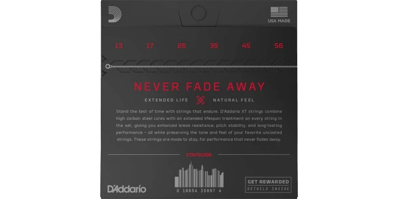 The new D’Addario XTAPB1356 XT Phosphor Bronze acoustic guitar string set is here available in Medium tension, with 13-56 string gauges. Replacing the D’Addario EXP17 string set, the XTAPB1356 set features an improved, microscopically thin treatment, providing protection against corrosion while preserving the tone and feel of uncoated strings. The new XT Phosphor Bronze Acoustic Guitar strings are now available from Merchant City Music, Glasgow’s longest-established guitar specialist. We ship fast to the UK, Europe and worldwide.