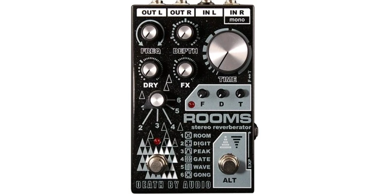The Death By Audio ROOMS is a stereo, multi-function digital reverb capable of searing volume, gated walls of sound, and long, trailing reverberant ambiances with an intuitive array of controls designed with live mood-bending in mind.