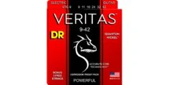 The DR Strings Veritas VTE-9 string set includes Light Electric Guitar strings with 9-42 gauges. DR Strings VERITAS Electric Guitar Strings maintain their tone, tuning stability and intonation thanks to Coated Core Technology, a process of coating the round core wire, which locks the wrap wire in place and extends string life by protecting the core from corrosion. A Quantum Nickel wrap wire delivers more power, brighter tone and greater flexibility and responsiveness. All DR VERITAS sets include both standard plain steel AND Xenon Power-Plain strings, which have increased output to balance with the wound strings. Individual string gauges: 9, 11, 16, 24, 32, 42.