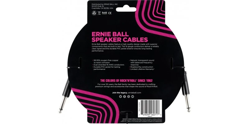 The Ernie Ball 3 Foot Speaker Cable is a substantial cable, which immediately breeds confidence in its longevity. Featuring superior components that are built to last, this speaker cable includes 16 gauge conductors which deliver a reliably clear signal. The durable PVC jacket exterior ensures long-lasting performance. The cable is covered by Ernie Ball’s Limited Lifetime Warranty.