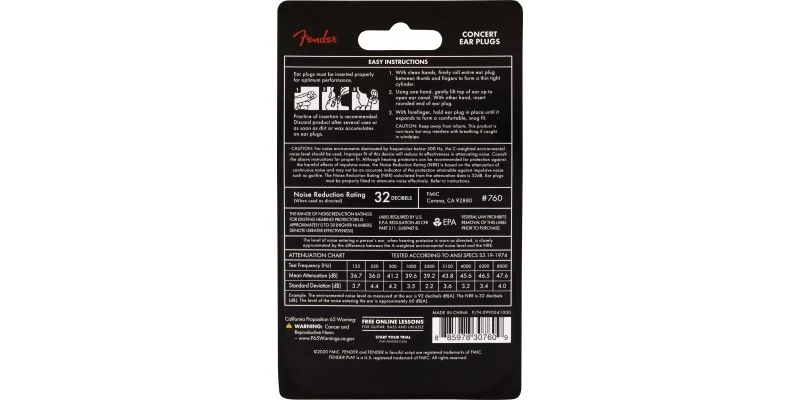 Fender Concert Ear Plugs Features