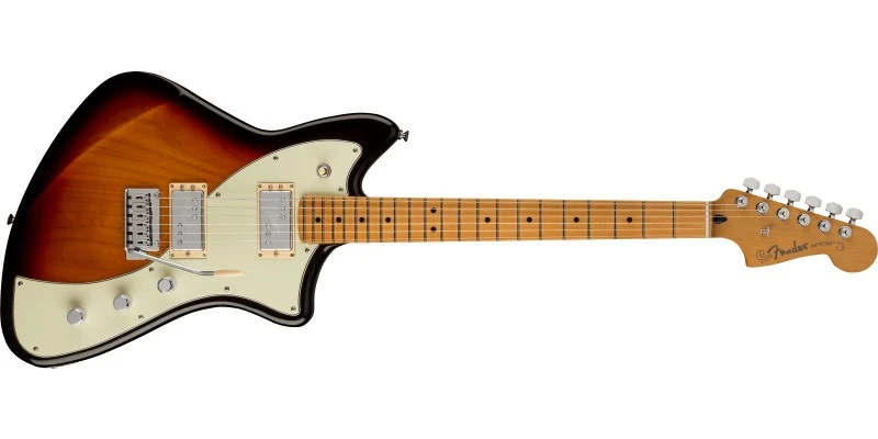 The Fender Player Plus Meteora HH is here presented in a 3-Colour Sunburst finish with Maple fretboard. With a unique body shape originally seen on the Parallel Universe Meteora, this Player Plus model comes with a 2-Point Synchronized Tremolo, Fireball humbucking pickups and an S-1 switch for massive tonal versatility. The Modern āCā shape neck is satin-finish and comes with rolled fretboard edges for outstanding playing comfort.