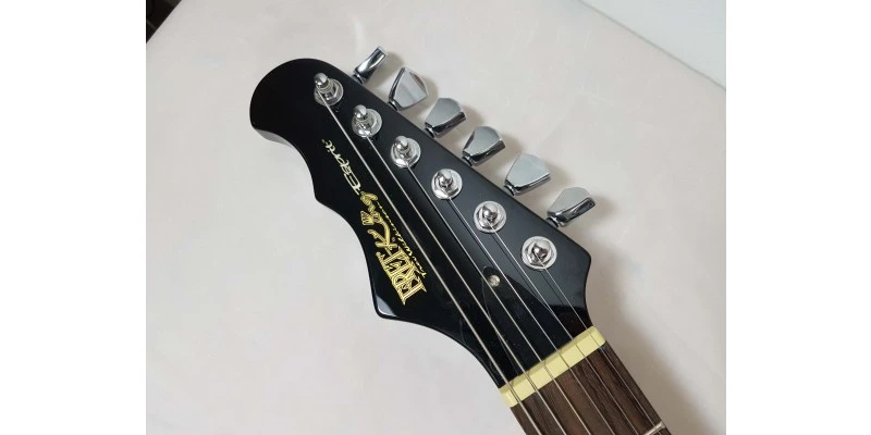 Familiar, but different to anything you will have seen, heard or played before, the Esprit V’s distinctive reversed six-a-side in-line peghead, striking asymmetric body, chrome covered pickups and signature oversized pickguard add up to a statement of style with individuality and attitude to spare.