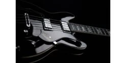 This semi acoustic bass guitar has classic styling. It comes with some very modern touches though. Playability wise the maple set neck is slim and very comfortable. The Hagstrom Viking Bass in Black includes an H-Expander Truss Rod. This adds stability to the neck. Important given its slender proportions. Resinator wood is a composite used for the fretboard. It delivers tones similar to that of ebony. It is more consistent though. Housed in the semi hollow contoured ply maple body are two Dyna Rail pickups. These are controlled using a Rotary switch and volume and tone knobs. A huge range of tones can be got with this combination.