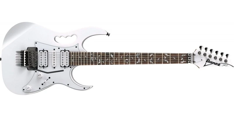 Ever fancied one of the all time classic signature model guitars but put off by the price? The Ibanez JEMJR-WH sports a Wizard III maple neck. This has been fitted with rosewood fretboard with the Tree of Life. The White finished mahogany body has the distinct Monkey Grip. A feature on the Jem since its conception. The JEM Junior also comes with a Standard DL Double Locking Tremolo system. An essential for a Steve Vai Signature guitar. Other hardware includes a set of Quantum pickups. This is with a traditional Humbucker, Single Coil, Humbucker setup. It delivers plenty of biting tones for the Ibanez JEMJR.