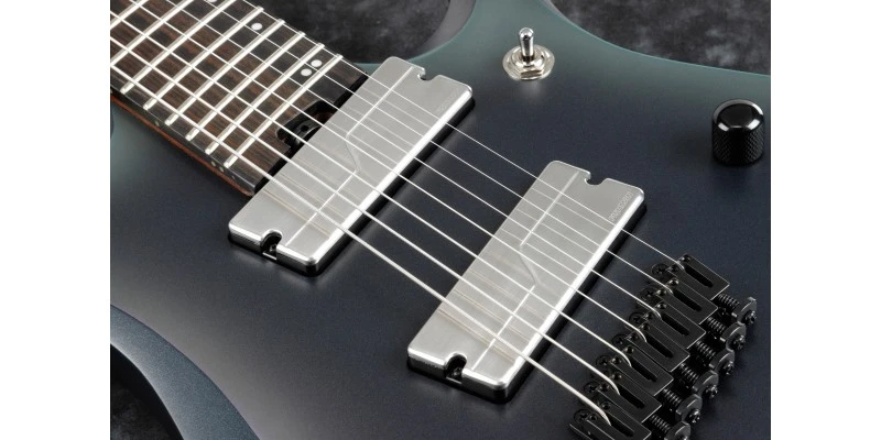 The Fishman Fluence Modern Humbucker pickups provide an aggressive tone and a powerful attack without excess noise. The Voicing switch allows the pickups to have a modern, active high output sound or a crisp, clean and fluid sound. Designed for both stability and sustain, the innovative Ibanez Mono-Rail bridge minimises cross-talk between strings and facilitates flawless intonation. Gotoh® locking tuners provide tuning accuracy and allow for quick, efficient string changing and the Schaller S-Lock strap lock pins hold a strap securely but make it easy to put the strap on and take off quickly.