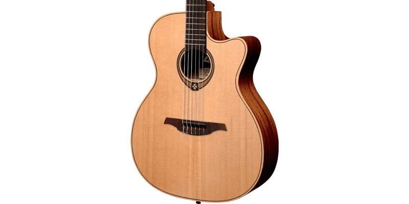 This auditorium-bodied TN170ASCE model from LAG is a perfect option for those who are used to playing electric or acoustic guitar, allowing an easy transition thanks to its slim body profile. It would also suit smaller players who, nevertheless, want a standard scale length. The soundboard on this guitar is Red Cedar. Visually darker than Spruce, Cedar is preferred by players who enjoy a warm, mellow tone. It is also a good choice on this slim-bodied guitar, accentuating the middle and lower registers which might otherwise be lost through the reduced body volume. Being solid wood, the soundboard will improve with age and playing, making this worthy of consideration as a longer term instrument.