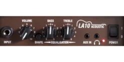 The Laney LA10 Acoustic Amplifier is a 10 Watt acoustic practice amp designed specifically for use with electro-acoustic guitars and other acoustic instruments. Packed with a Mp3/Aux input, headphone socket, and Shape switch – making it easy to get a great sound at the touch of a button – the LA10 is the perfect acoustic guitar amplifier for home use.