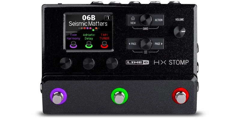 Despite its tiny size, HX Stomp is easy to both operate and program, thanks to its simple but powerful controls, 320 x 240-pixel colour LCD, and three capacitive-sensing footswitches with colour-coded LED rings. External control via MIDI and optional expression pedal and footswitch control provide additional flexibility, as does I/O that may be configured for sophisticated routing such as simultaneously feeding an amp and a FOH mixer, 4-Cable Method operation with an amplifier, and easy studio re-amping.