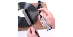 The kit starts with a super soft synthetic dust brush (brown) to detail everything but the record and needle. Then use the directional, unique cleaning pad (black) that lifts and traps the dust off your record. The black pad doubles as your cleaning solution applicator to clean your record. After applying the cleaner, flip it around to use the special drying material (grey). The innovative ergonomic handle gives you unmatched control and comfort.