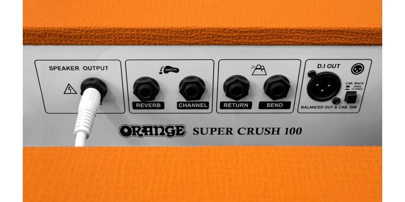 The Super Crush 100 features a balanced XLR output with Orange’s CabSim speaker emulation technology. Mimicking the sound of a 2×12 cab, this no-nonsense, all-analogue filter gives you instant access to a great D.I. guitar tone, straight into the P.A. or recording interface. The Cab Back switch selects between the sound of an open or closed back cab, homing in on your perfect direct sound quicker than you can say “I don’t need a mic”.