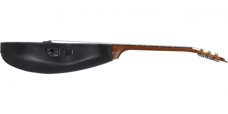 The Lyrachord® composite body is comfortable standing or sitting and provides excellent projection. A satin-finished neck, Ovangkol fretboard and bridge all combine to make playing effortless and responsive. The Celebrity Elite is equipped with the Ovation Slimline pickup and OP-4CT preamp system with a three-band EQ, volume/gain control, onboard tuner and low-battery light that make it easy to dial in your sound.