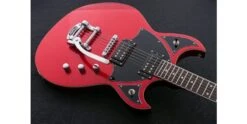 This is a pretty outstanding electric guitar. Not only does it look special it also has an amazing specification. The Reverend Reeves Gabrels Spacehawk comes with a semi hollow korina body. A centre block and a sealed maple top really help against feedback. The body also comes with a forearm contour. It makes playing the Space Hawk a more comfortable experience. The body and back of the neck feature a gloss metallic red finish. The three piece korina neck comes with a 24 3/4 inch scale. This is a classic instrument with some really nice modern touches. The Reverend Spacehawk now features an Ebony fingerboard and a bound headstock!