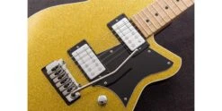 Reverend have always made great sparkle finishes and it’s nice to see this new signature model with it’s stunning Gold Flake painted top. The Reverend Tommy Koffin Signature Gold Metal Flake performs out of this world and has the looks to match.