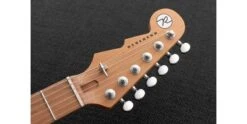 It also features a load of upgrades that Reverend have been adding to their guitars over the past few years: engraved neck and jack plates, triple string tree, upgraded Polyester capacitors and a Boneite nut. The excellent Wilkinson WVS50 IIK Tremolo features another new Joe Naylor invention, the Vari-Claw. The Vari-Claw allows you to easily switch between 3 springs in the middle hooks of the claw for a firm feel, or 2 springs on the outside recessed hooks of the claw for a soft feel, with little or no adjustment to the claw itself. You can really go wild with the trem and tuning is kept incredibly stable. This is thanks in part to the locking tuners and slippery Boneite nut.