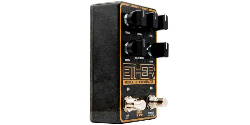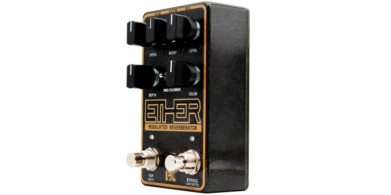 A compact modulated reverberator, Ether delivers vast ambient and shimmering soundscapes. With endless tails, the pedal is further manipulated by Tap Tempo Vibrato, Tremolo and Harmonic-Tremolo, all designed to bring you to a realm of dark, cavernous voids and eerie, yet shimmering reflections. Ambient bliss is only a stomp away.