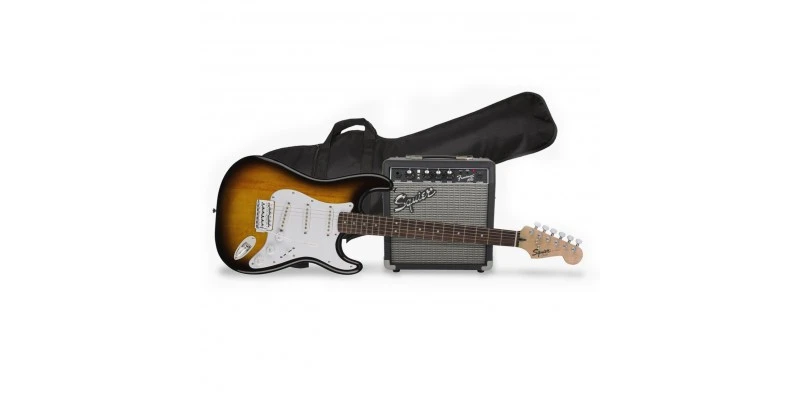 Electric Guitar Pack with Brown Sunburst Squier Stratocaster, Frontman 10G amp, and all accessories!
