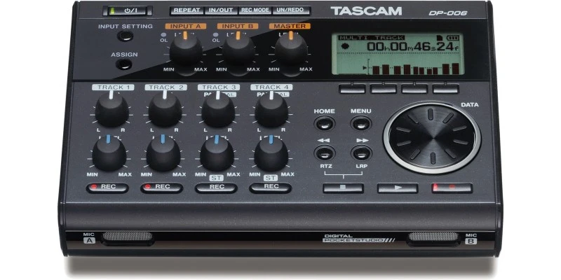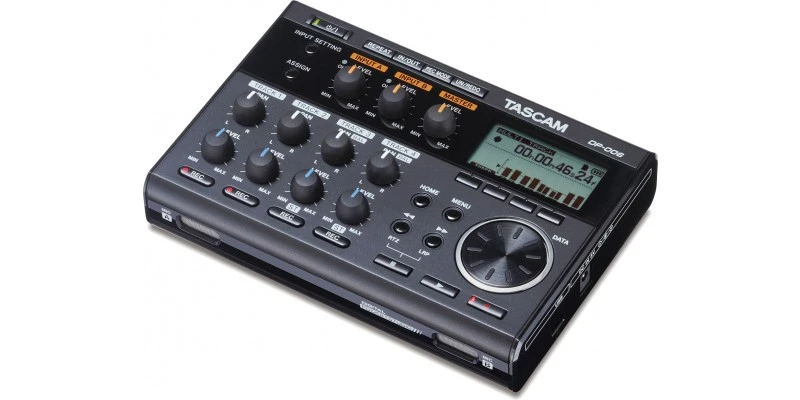 With the Tascam DP006 youโre ready wherever creativity strikes. With two condenser microphones directly in the front, this compact battery-powered multitrack recorder is optimally designed for on-the-spot recording. Record vocals or acoustic guitar anytime without the need for extra equipment or set-up time. There is also a tripod mount for versatile set-up and placement. With the analogue feel of dedicated control knobs, built-in chromatic tuner and metronome and an ultra lightweight design, this Pocketstudio is one of the simplest to use songwriting scratchpad on the market. The DP-006 has two inputs by phone jack to connect an external microphone, an electric-acoustic guitar or a line-level device like a synthesizer. With an optional conversion cable a tablet device like an iPad will be able to connect. Recordings are written to widely available SD/SDHC card media (2GB card included). All song ideas can be transferred via USB 2.0 or SD card readers to and from the unit at any point in the recording process. Basic editing functions are also available. For elongated battery life, the DP-006 can connect directly to Tascam’s external battery pack (BP-6AA) via USB. Buy online today from Merchant City Music. Fast UK delivery service. Visit our Glasgow shop.
