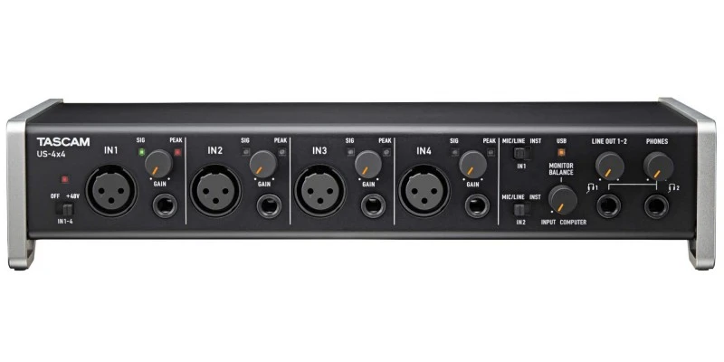 The Tascam US-4×4 USB Audio Interface has Ultra High Quality Mic Preamps.