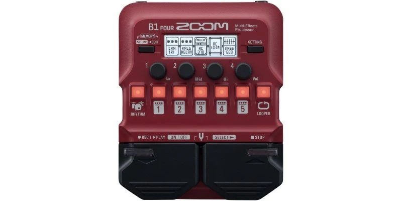 The Zoom B1 Four is a lightweight and powerful Bass Multi-Effects Pedal which can function as a standalone unit, or seamlessly integrate into an existing pedalboard. Over 60 effects are provided, along with nine amp models and 68 rhythm patterns. A looper with 30 seconds recording time opens up the ability to overdub, creating rich soundscapes with ease.